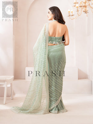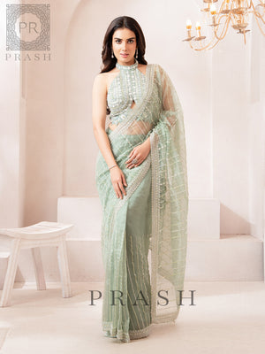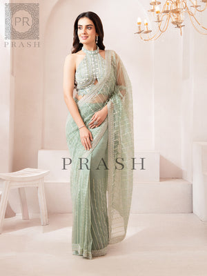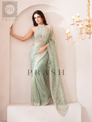 Refresh your ethnic wardrobe with this Mint Green Readymade Saree, designed for effortless elegance. Its soothing mint green color adds a modern, stylish touch, while the ready-to-wear design ensures a hassle-free draping experience. Perfect for parties, weddings, festive occasions, and evening events, this saree combines contemporary charm with traditional sophistication for a flawless ethnic look.