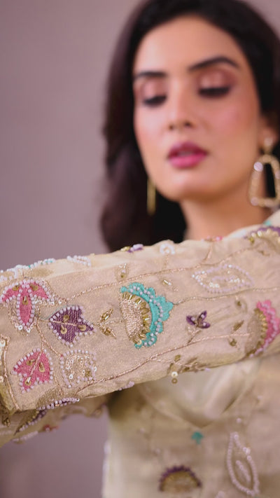 Description: Step into timeless elegance with this beautifully crafted Indo Western Palazzo Set made from premium raw silk fabric. The outfit blends traditional charm with...