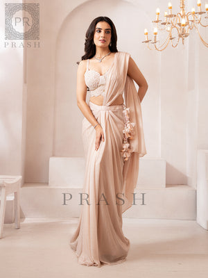 Grace your special occasions with this Peach Imported Chiffon Readymade Saree, designed for effortless elegance and comfort. Crafted from premium imported chiffon fabric, it drapes beautifully, offering a soft and flowy silhouette. The soothing peach color adds a touch of feminine charm, making it perfect for weddings, festive celebrations, parties, and evening events. With its ready-to-wear design, this saree brings together convenience, style, and sophistication in one stunning outfit.