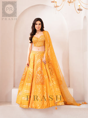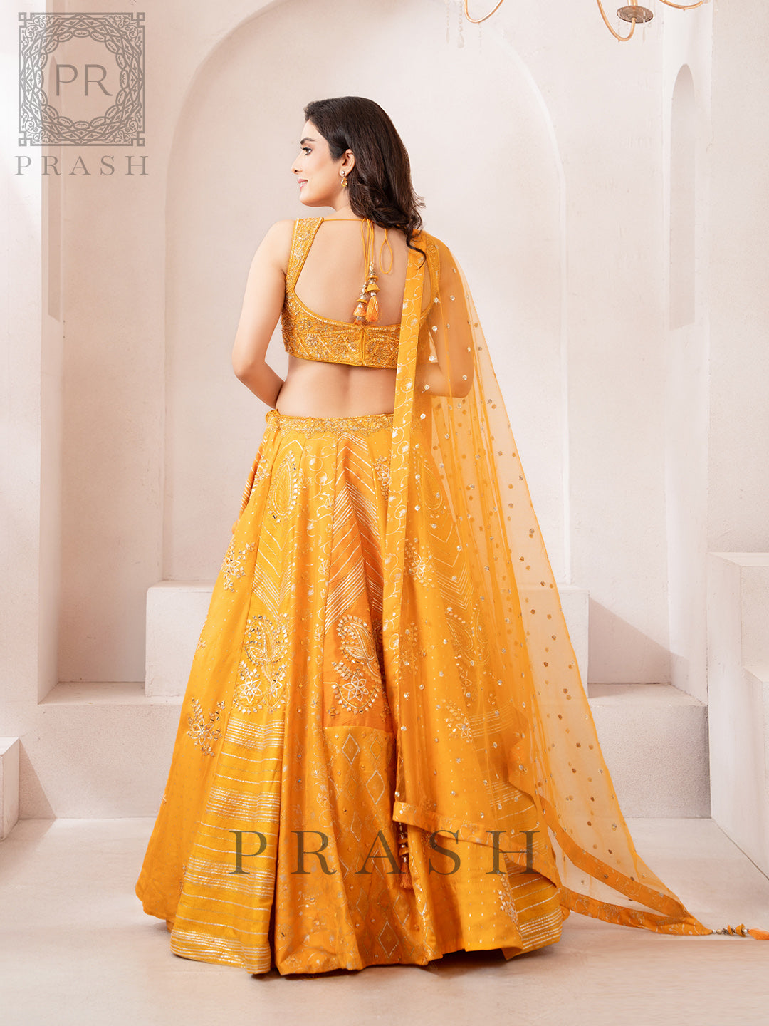 Orange Raw Silk Lehenga Choli Wedding & Festive Wear