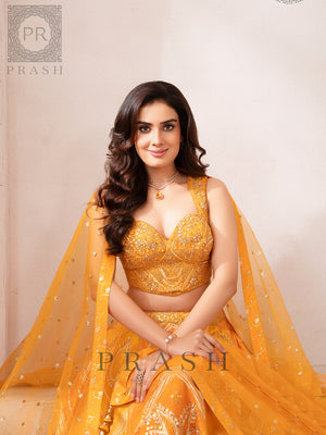 Bring warmth and radiance to your celebrations with this Orange Raw Silk Lehenga Choli, designed for weddings, festive functions, and grand occasions. Made from luxurious...